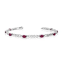 14K White Gold Oval Ruby and Diamond Bracelet