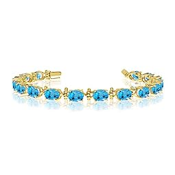 14K Yellow Gold Oval Blue Topaz Tennis Bracelet