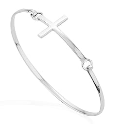 Women’s 925 Sterling Silver Thin Line Sideways Cross Bangle Bracelet