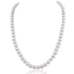 White Freshwater Cultured Pearl Necklace A Quality (6.5-7.0mm), Rhodium-Plated-Base-Metal Clasp (18)