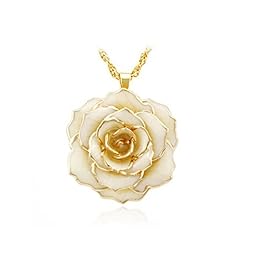 ZJchao 30mm Golden Necklace Chain with 24k Gold Dipped Real Rose Pendant Gift for Women