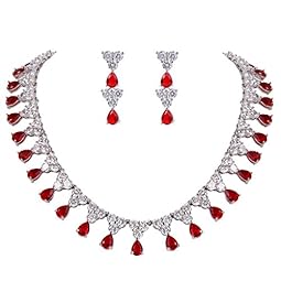 EVER FAITH Silver-Tone CZ Birthstone Sweet Love Heart Tennis Necklace Earrings Set