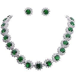 EVER FAITH Elegant Star Round Prong CZ Birthstone Necklace Earrings Set