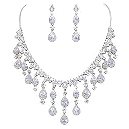 EVER FAITH Silver-Tone CZ Birthstone Elegant Tear Drop Necklace Earrings Bracelet Set