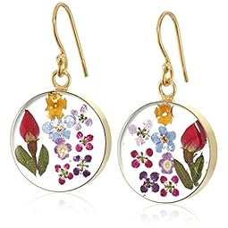 Sterling Silver Pressed Flower Circle Drop Earrings