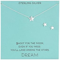 Sterling Silver Star Necklace and Earrings Jewelry Set, 18″