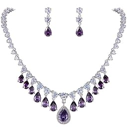 EVER FAITH Women’s CZ Elegant Water Drop Dangle Necklace Earrings Set Silver-Tone