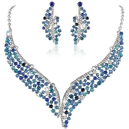 EVER FAITH Austrian Crystal Graceful Wing Flower Necklace Earrings Set