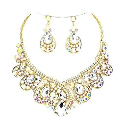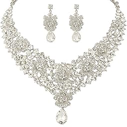 EVER FAITH Women’s Austrian Crystal Bridal Bowknot Flower Necklace Earrings Set
