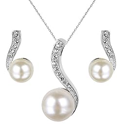 EleQueen Women’s Crystal Simulated Pearl Elegant Wedding Pendants Necklace Earrings Jewelry Sets Silver