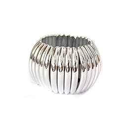 FASHION JEWELRY Silver Stretch Clam Bangle Bracelet 2 Inch Thick Bangle