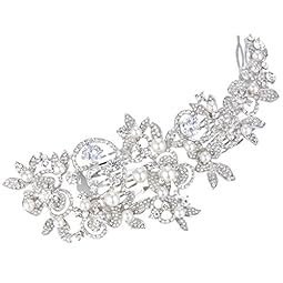 EVER FAITH Silver-Tone Zircon Crystal White Simulated Pearl 6 Inch Flower Leaf Hair Side Comb Clear