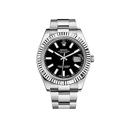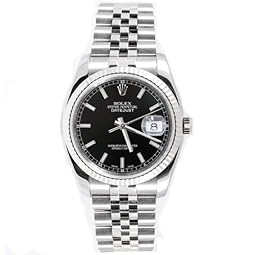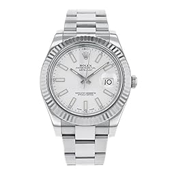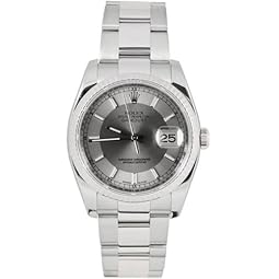 Rolex Mens New Style Heavy Band Stainless Steel Datejust Model 116234 Oyster Band 18K White Gold Fluted Bezel Silver/Slate Stick Dial