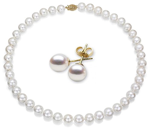 14k Gold, AAA Quality High Luster White Freshwater Cultured Pearl Set (9-10mm) Perfect Gift