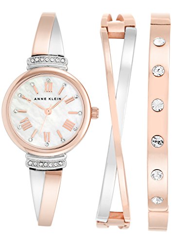 Anne Klein Women’s AK/2245RTST Swarovski Crystal Accented Rose Gold-Tone and Silver-Tone Bangle Watch and Bracelet Set