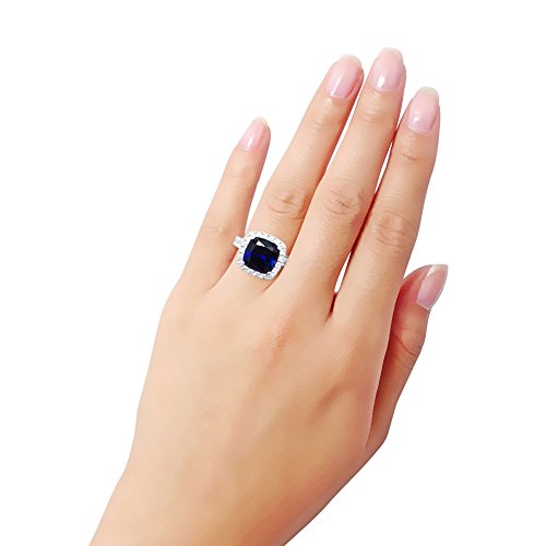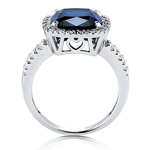 BERRICLE Sterling Silver Halo Simulated Blue Sapphire Cushion Cut Cubic Zirconia CZ Statement Cocktail Fashion Ring for Women, Rhodium Plated Size 8