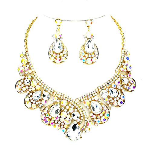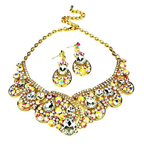 Uniklook Chunky Ab Crystal Gold Statement Women Fashion Jewelry Necklace Earrings Set Bridal Prom Pageant