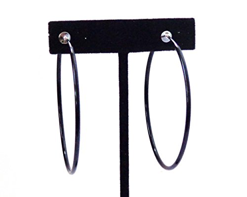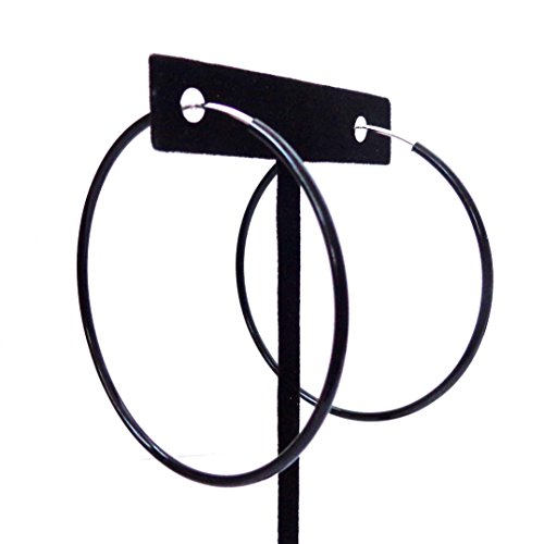 Clip-on Earrings Black Hoop Earrings Simple Thin 2.25 inch Hoop