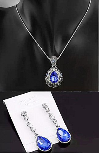 Majesto Dark Blue Teardrop Pendant Necklace Earrings Set for Women Teen Girls 18K White Gold Plated Prime Gift