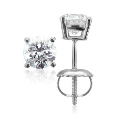 Diamond Stud Earrings Round Brilliant Shape White Gold 14K 4 Prong Screw Back ( J Color SI2 Clarity 2 Carat t.w. Weight )
