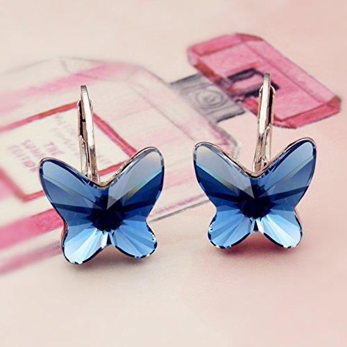 Swarovski Crystals Color: Denim Blue; Earrings’ size: 0.5in by 0.7in; Each Earring Weight: 2g.