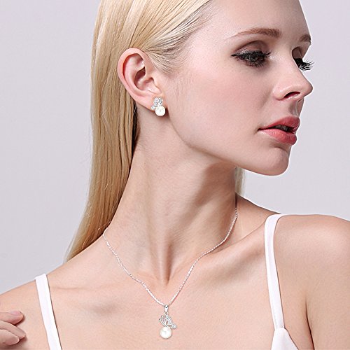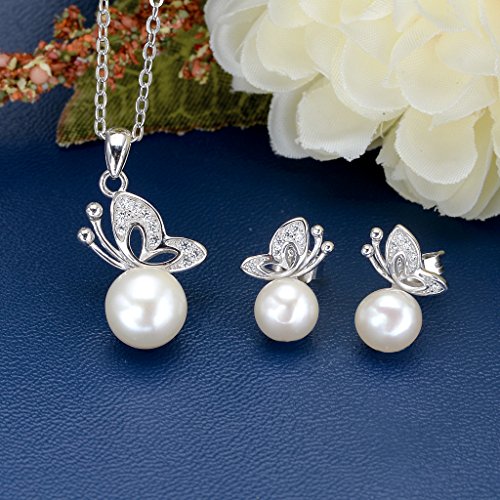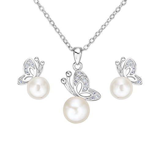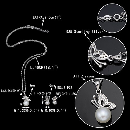 EVER FAITH 925 Sterling Silver CZ Freshwater Cultured Pearl Elegant Butterfly Necklace Earrings Set Clear