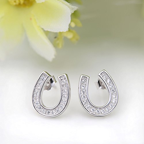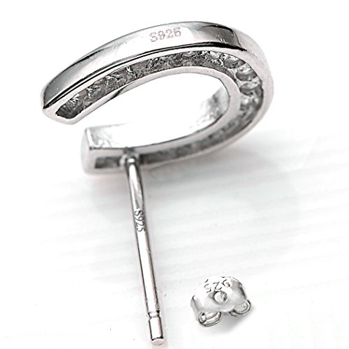 EVER FAITH 925 Sterling Silver Elegant Pave Cubic Zirconia Lucky Horseshoe Stud Earrings Clear
