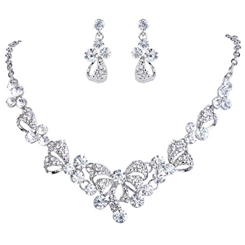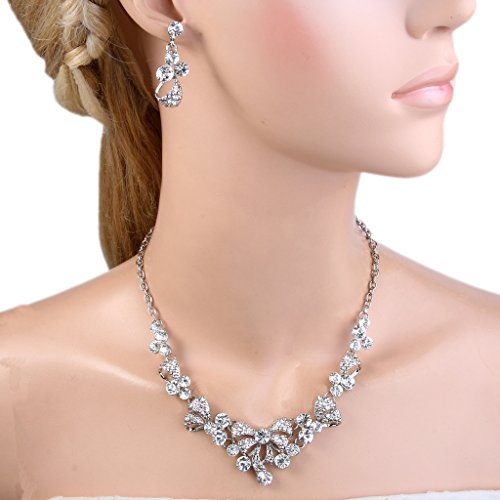 EVER FAITH Women’s Austrian Crystal Bridal Bowknot Flower Necklace Earrings Set