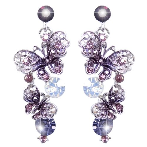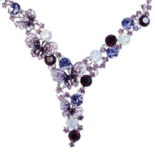 EVER FAITH Elegant Butterfly Silver-Tone Purple Austrian Crystal Necklace Earrings Set