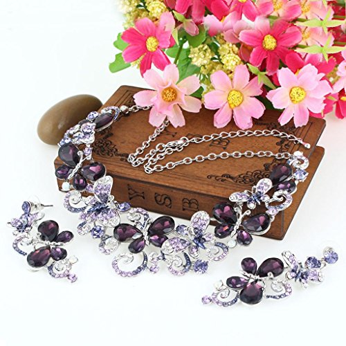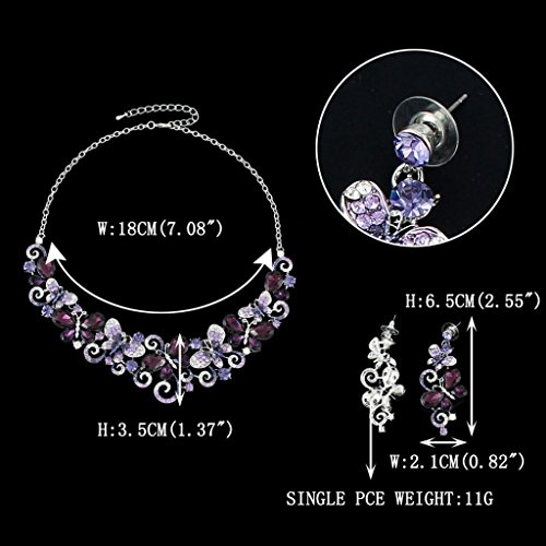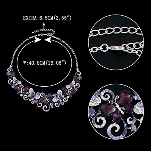 EVER FAITH Austrian Crystal Butterfly Wave Bridal Necklace Earrings Set Purple Silver-Tone