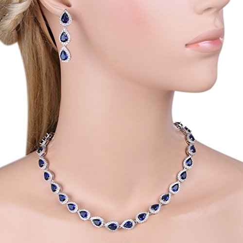 EVER FAITH Silver-Tone CZ Birthstone Elegant Tear Drop Necklace Earrings Bracelet Set