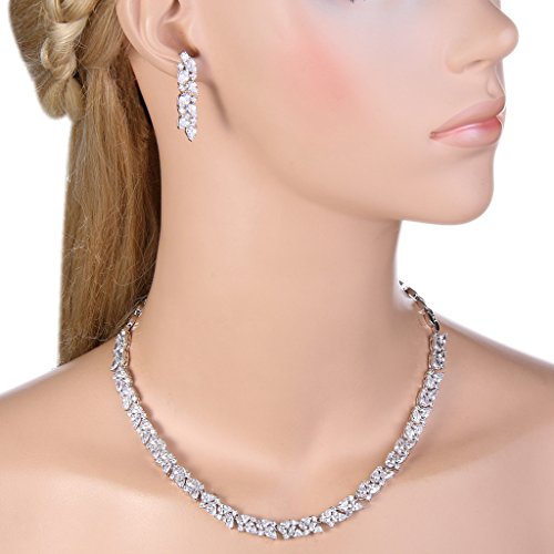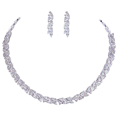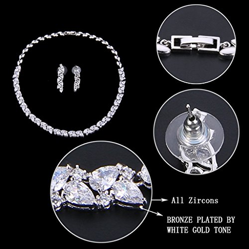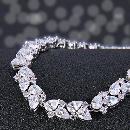 This fabulous jewelry is made of cubic zirconia and the bedazzling stones make you feel more ladylike. Cubic zirconia, as a beautiful synthetic stone that is durable, lustrous and entirely colorless. It is frequently used in jewelry.Sparkle under lights, telling its quality to everybody.