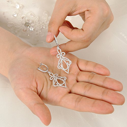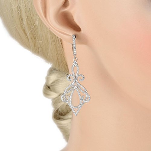 EVER FAITH Silver-Tone Zircon Elegant Floral Vine Tear Drop Pierced Dangle Earrings Clear