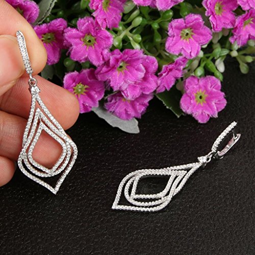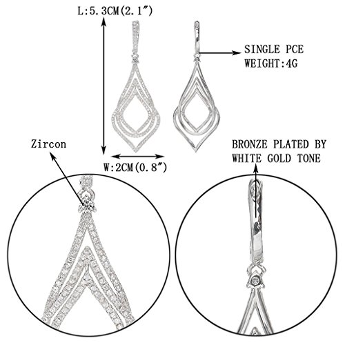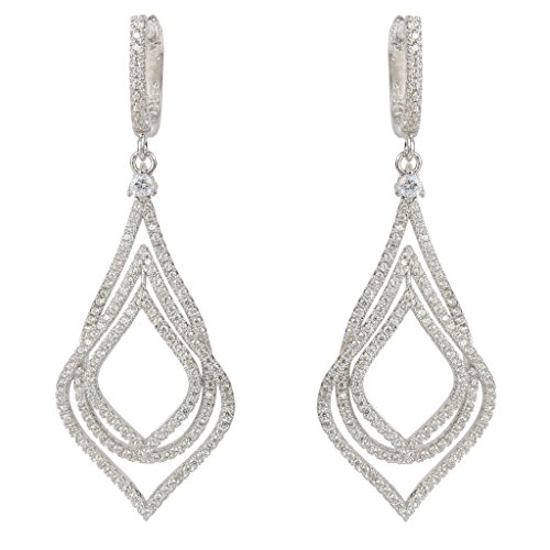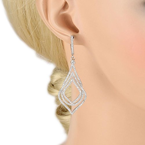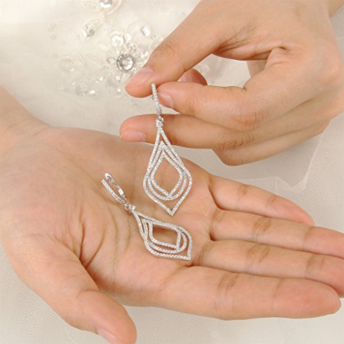 EVER FAITH Women’s Full Zircon Wedding 3 Layers Tear Drop Pierced Dangle Earrings Clear Silver-Tone