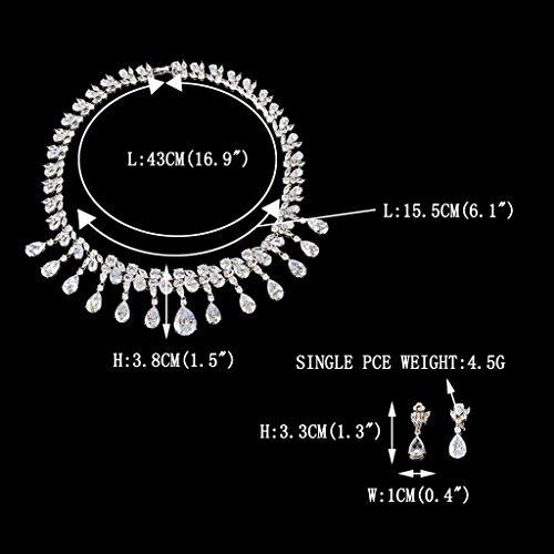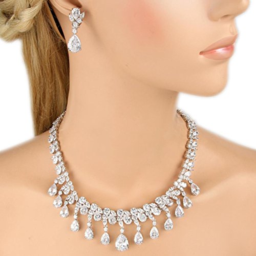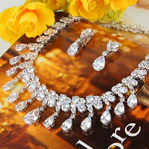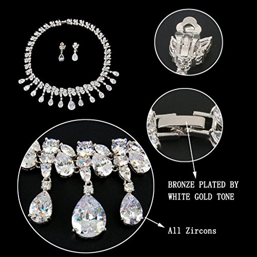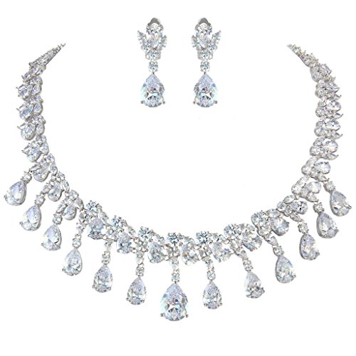 EVER FAITH Silver-Tone Zircon Wedding Tear Drop Dangle Pendant Necklace Clip-on Earrings Set Clear