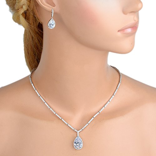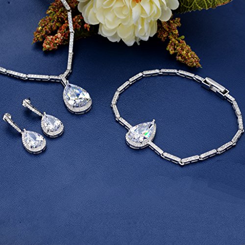EVER FAITH Women’s 925 Sterling Silver CZ Tear Drop Pendant Necklace Earrings Bracelet Set Clear