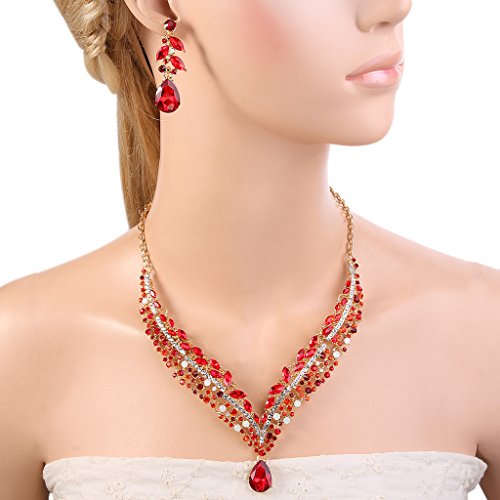 EVER FAITH Women’s Austrian Crystal Decorative Leaf Teardrop Necklace Earrings Set