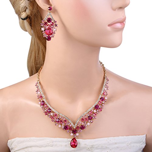 EVER FAITH Austrian Crystal Elegant V-Shaped Teardrop Necklace Earrings Set