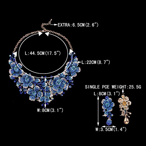 Necklace Length: 47.5cm(18.7″)-55cm(21.6″), Attachment Size: 7.7cm(3″) by 23.51cm(9.2″), Earrings Size: 3.7cm(1.4″) by 8.1cm(3.2″), One Earring Weight: 21.3g.