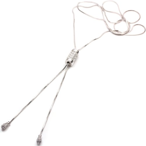 FC JORY Rose & Rhodium Plated CZ Cylinder Y Adjustable Rope with Slider Stopper Chain Necklace