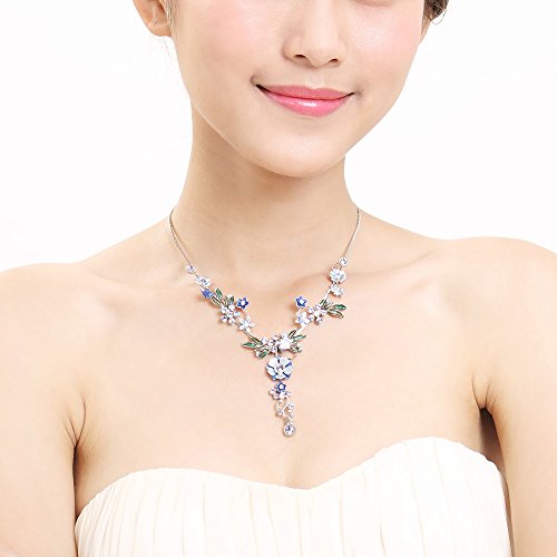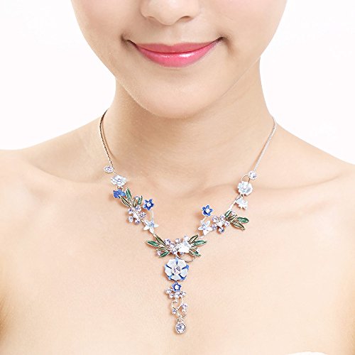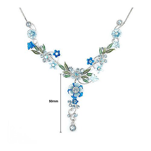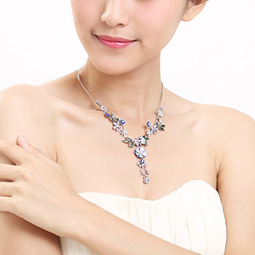 Glamorousky Blue Flower and Tiny Butterfly Necklace with Blue Austrian Element Crystals (975)