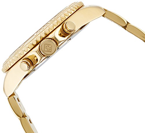 Japanese Quartz Movement Flame-Fusion Crystal; Brushed and Polished 18k Gold Ion-Plated Stainless Steel Case and Bracelet Chronograph Functions with 60 Second, 60 Minute and 1/10th of a Second Subdials Champagne Dial with Gold Tone Hands and Hour Markers; Luminous; 18k Gold Ion-Plated Stainless Steel Unidirectional Bezel Water-resistant to 200 M (660 feet)