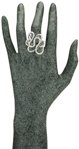 JanKuo Jewelry Black Rhodium Plated Cocktail Swirl Pave Crystals Ring