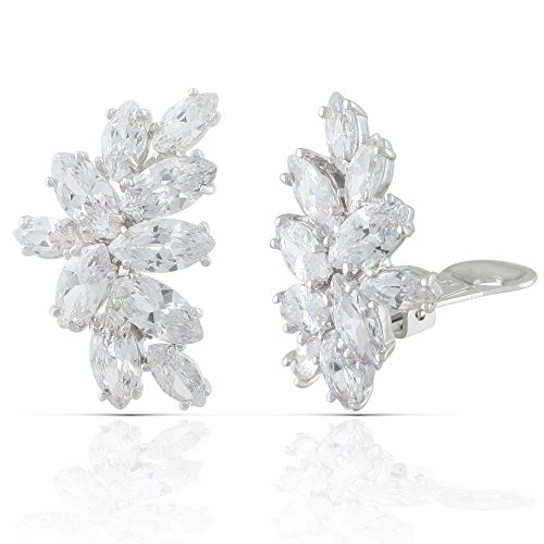 JanKuo Jewelry Rhodium Plated Bridal Marquise Floral Cubic Zirconia Clip On Earrings