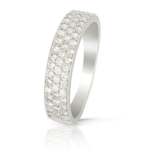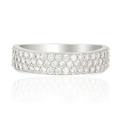 JanKuo Jewelry Rhodium Plated Cubic Zirconia Pave Half Eternity Wedding Engagement Band Ring