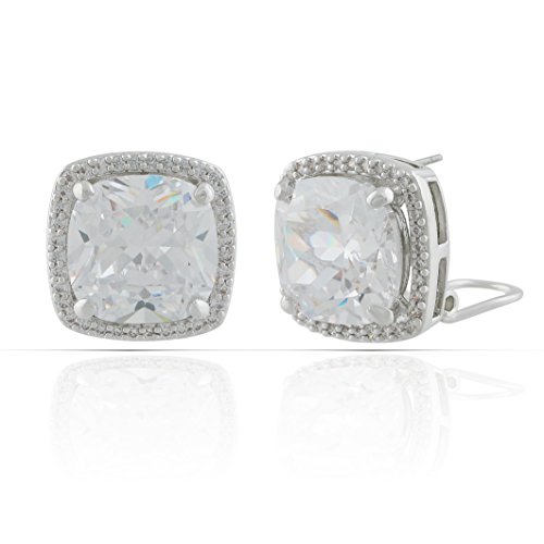 JanKuo Jewelry Rhodium Plated Cushion Cut Halo Cubic Zirconia French Clip Earrings
