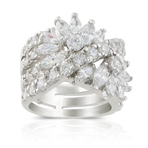 JanKuo Jewelry Rhodium Plated Marquise Cubic Zirconia Floral Cocktail Wide Band Ring
