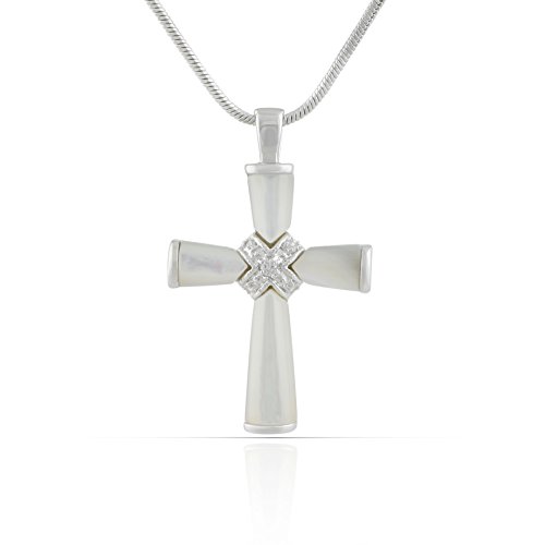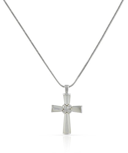 JanKuo Jewelry Rhodium Plated Mother of Pearl Cross with Cubic Zirconia Pendant Necklace, 16″+2″ Extender