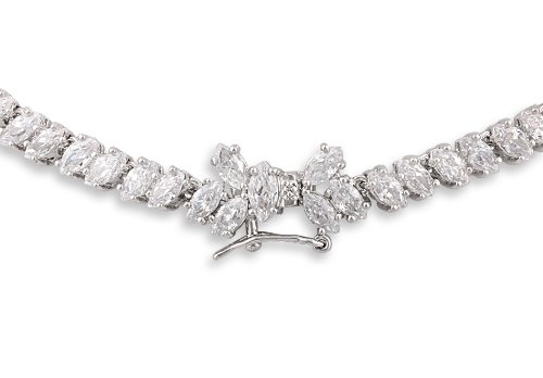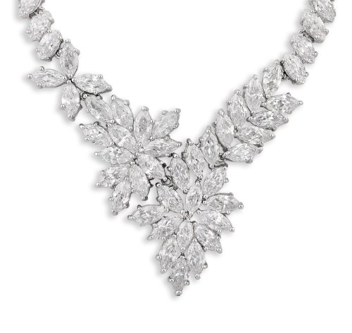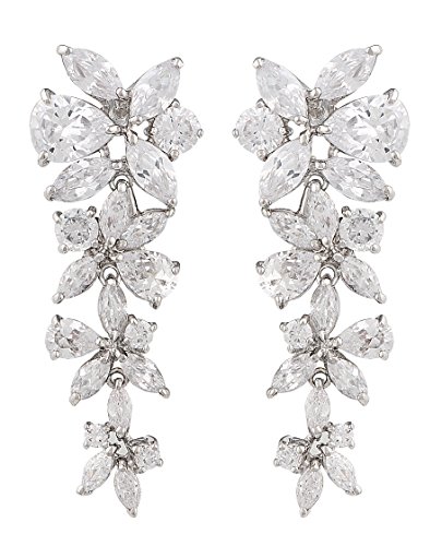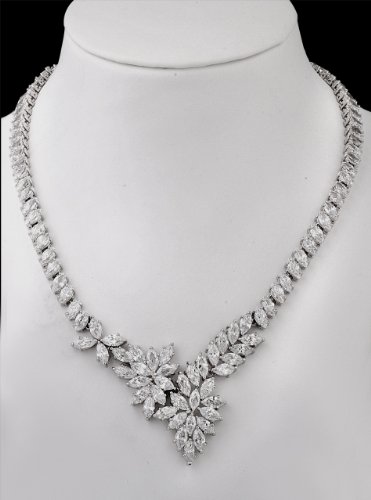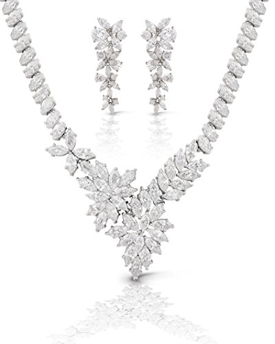 Necklace Length: 17″, Earrings Length: 1.90″, Earrings Largest Width: 0.72″. Necklace Weight: 45 grams, Earrings Weight: 15 grams. JanKuo Jewelry Rhodium Plated Fancy Prom Bridal Floral Graduated Marquise Cubic Zirconia Necklace and Earrings Set in Gift Box COLOR MAY VARY FOR FREE GIFT BOX.