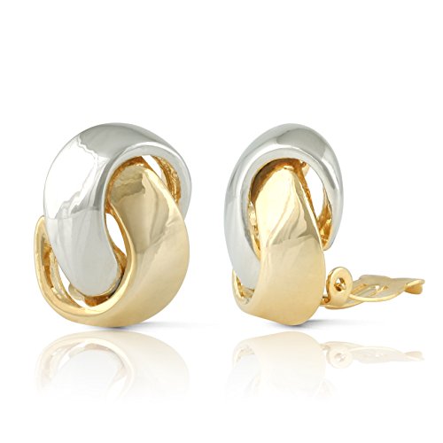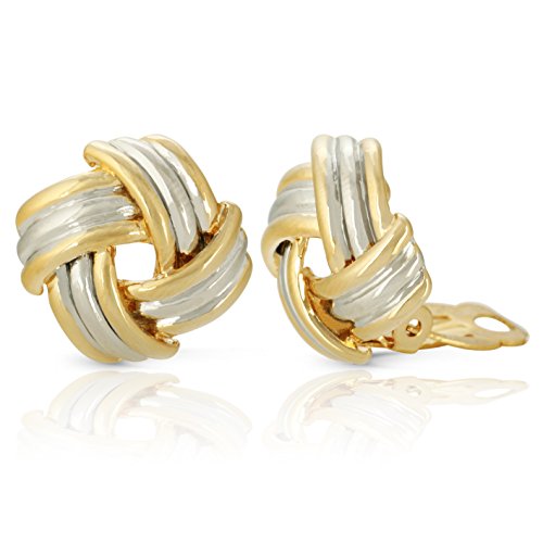 JanKuo Jewelry Two Tone Knot Clip On Earrings
